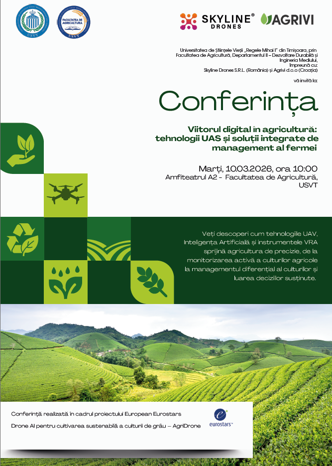 Conferința ”Viitorul digital în agricultură: tehnologii UAS și soluții integrate de management al fermei” (Timișoara, 10.03.2026)