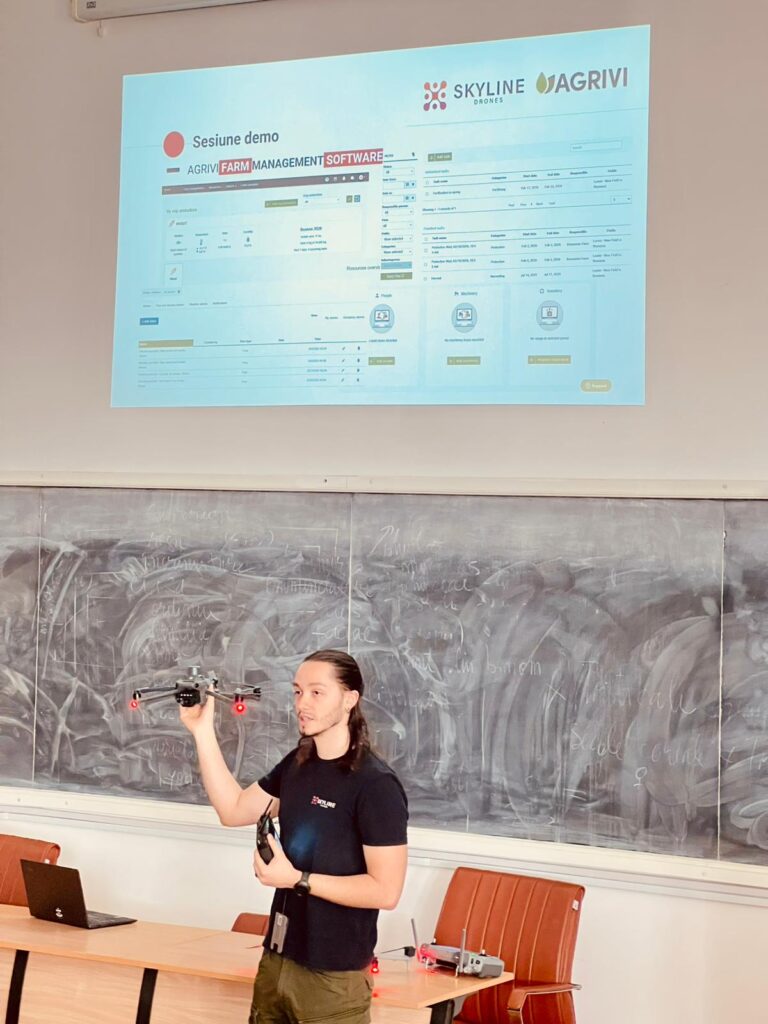 Skyline Drones, în colaborare cu partenerul croat Agrivi, a organizat și desfășurat această conferință cu sprijinul Facultății de Agricultură din cadrul Universității de Științele Vieții „Regele Mihai I” din Timișoara (USVT) în data de 10.03.2026. Evenimentul a fost destinat studenților la agronomie, cadrelor didactice și fermierilor interesați de progresele tehnologice din domeniul agriculturii de precizie și a reunit 134 de studenți și fermieri, precum și 18 cadre didactice.