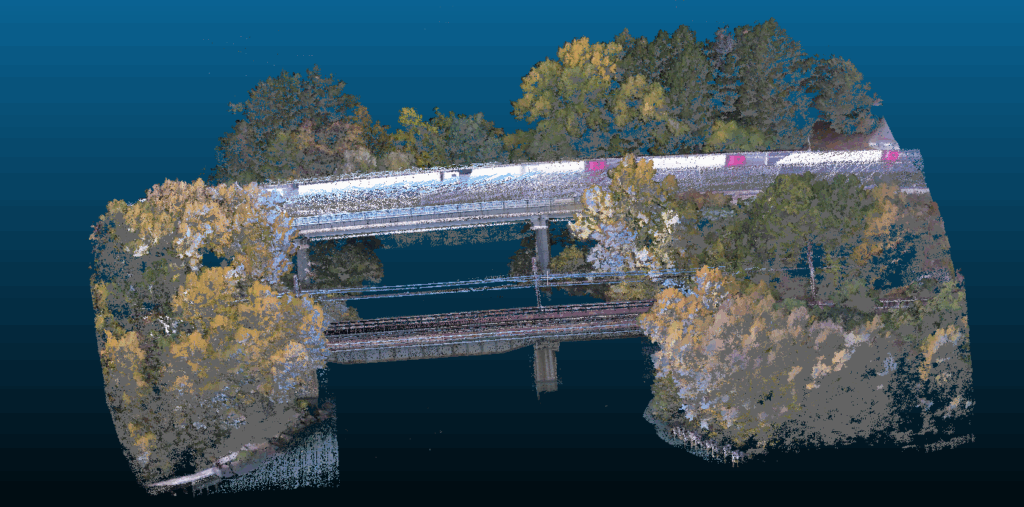 This model allows engineers to measure any structural element, identify incipient degradation, and assess the dynamics of vegetation that could affect the railway area. More importantly, the entire inspection was carried out without direct access to the bridge, without stopping traffic, and without operational risks.